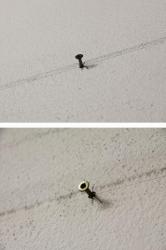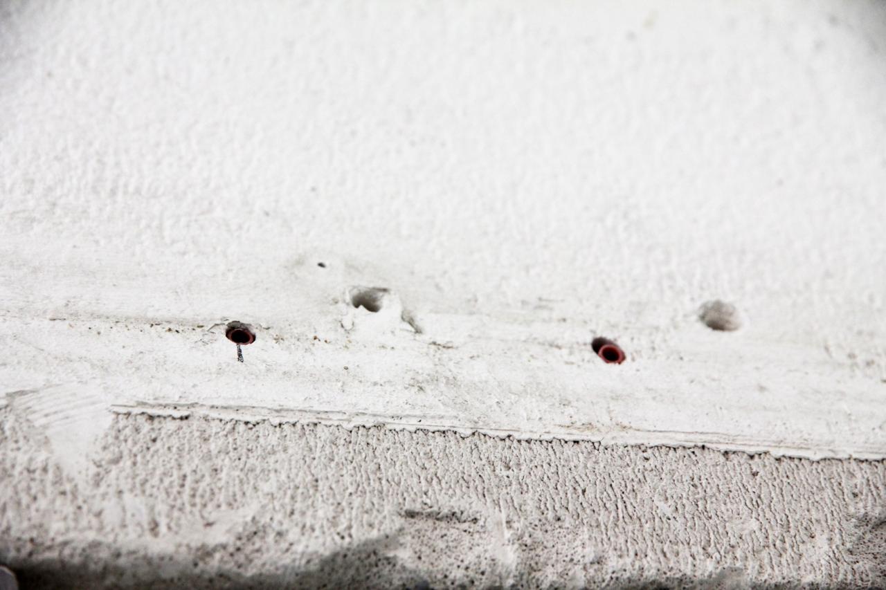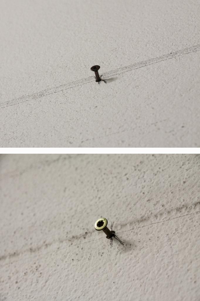 Traces left in different places of a 1500m2 space are duplicated. Every trace (nails, screws, holes, wires, ...) is reproduced, at a specific number of centimeters from the original.