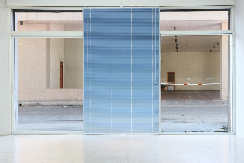 When the gallery opens, the blinds are shifted : the day sky is seen from the inside and the night sky from the outside. When the gallery closes, the blinds are shifted again and the night falls inside of the gallery. During the opening hours, it is the day only inside of the gallery and everywhere outside is dark. During the closing hours, the works in the gallery are put to sleep, and the exhibition moves to the outside. Window Shade establishes a relationship between the individual and natural phenomena; In off-beat with the natural cycles, a double reality is created: the day rises twice in the city, and the night falls twice.